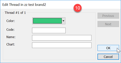 If you have the RGB values of a Thread Chart that is not included in the software, you can create your own. There are many steps so this method is not recommended if you have a lot to enter.