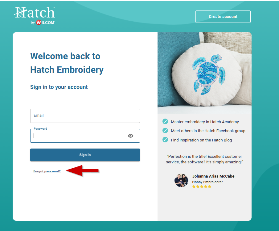 How do I reset my Hatch Embroidery password?